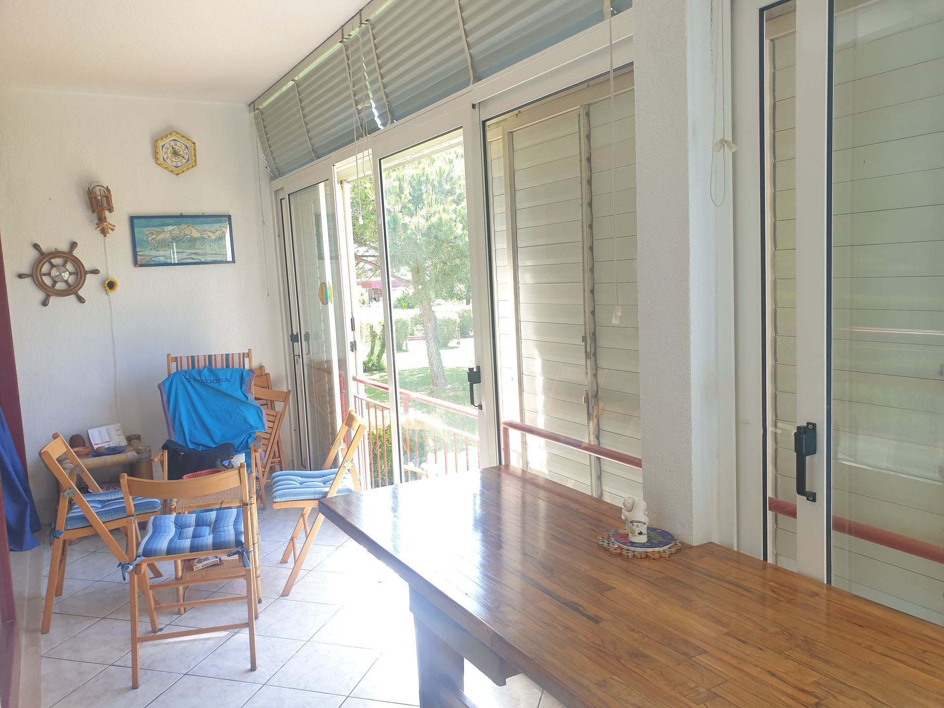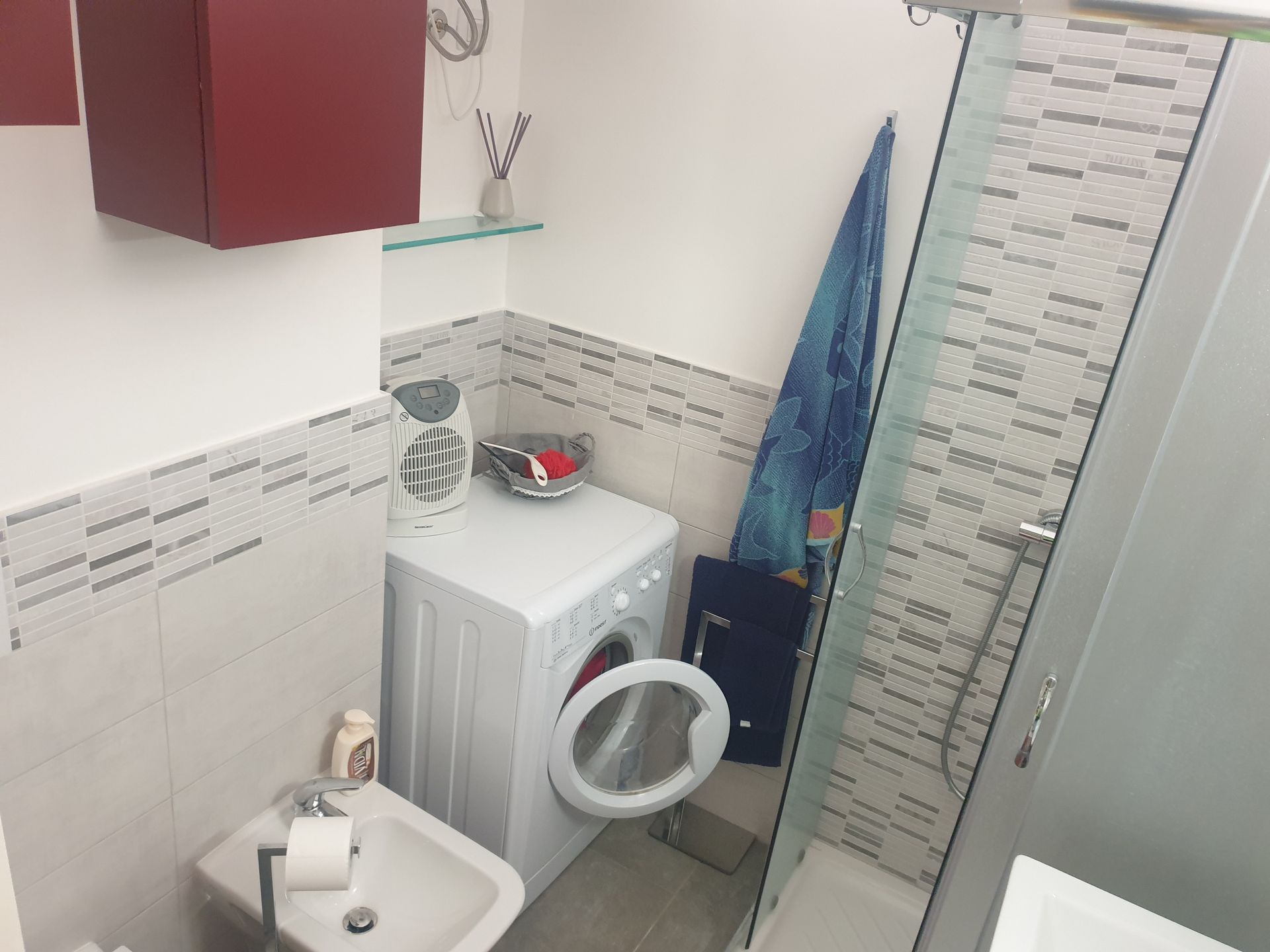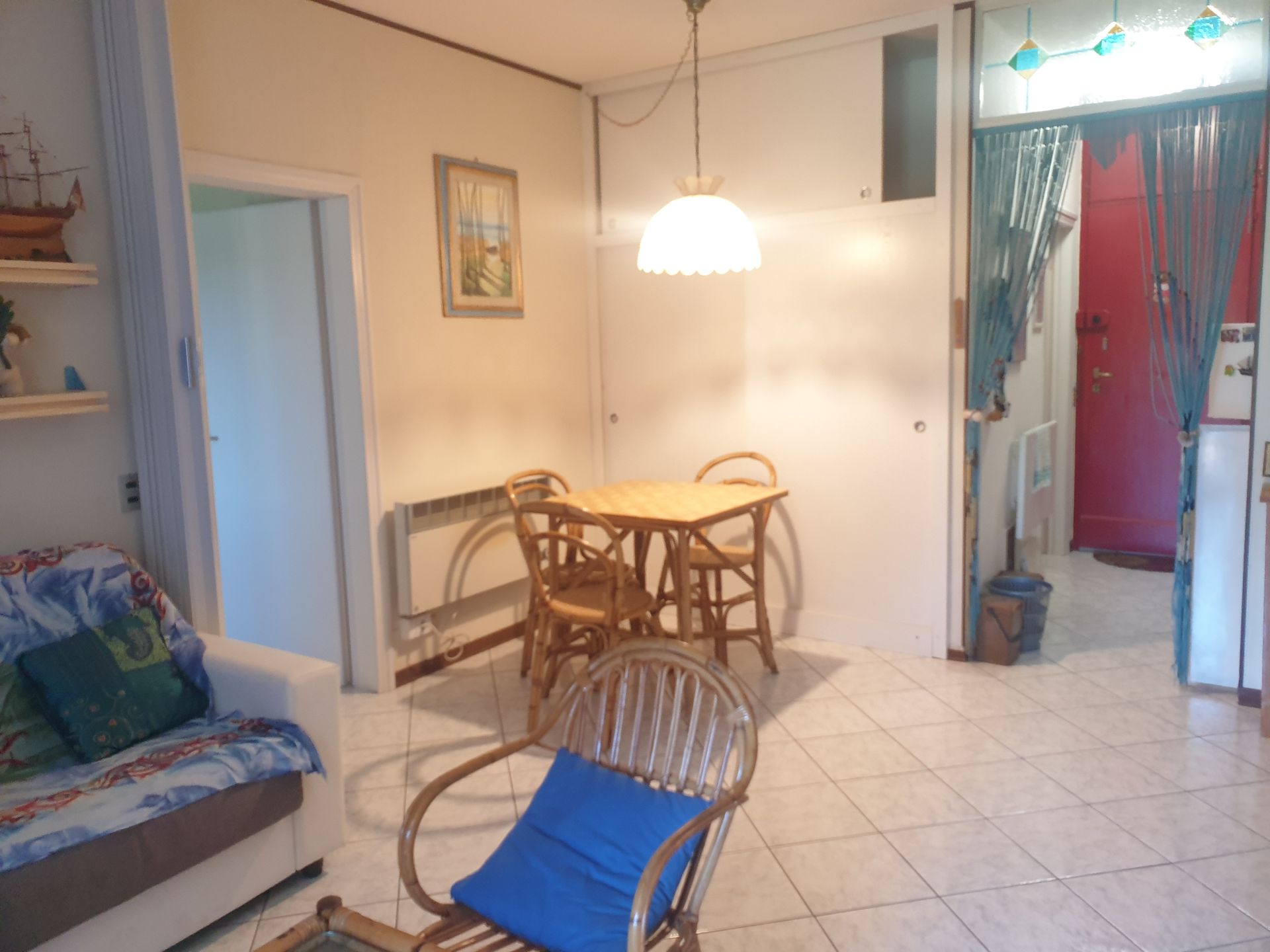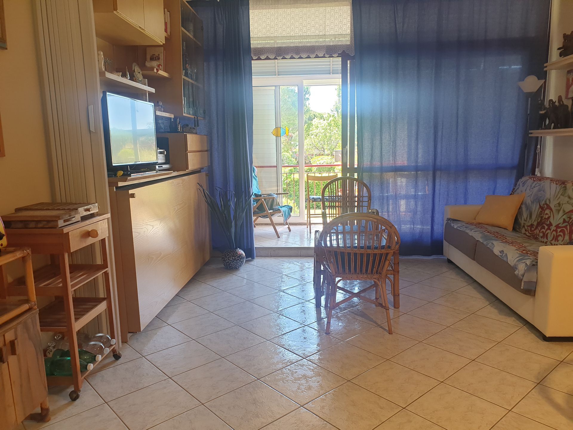 Appartamento al primo piano in Residence composto da: soggiorno con angolo cottura e divano letto matrimomiale, camera con letto matrimoniale, bagno con doccia e doppia doppia veranda . L'appartamento dispone di utensili necessari per la cucina, TV e lavatrice. Ventilatori a soffitto. Accesso gratuito alla piscina e parcheggio condominiale (no posti assegnati). Dista circa 450mt dal mare.