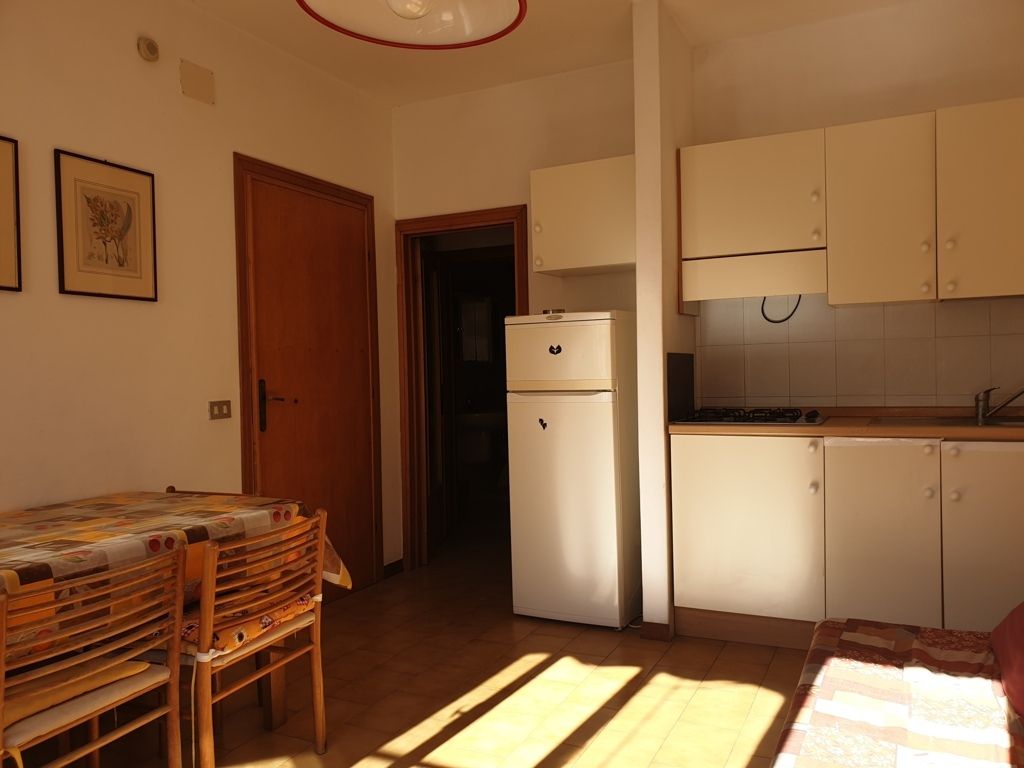 Appartamento al primo piano con balcone fronte-reto composto da: soggiorno con angolo cottura e divano letto, camera matrimoniale e bagno con doccia. TV e posto auto in parcheggio condominiale. Dista circa 450mt dal mare.