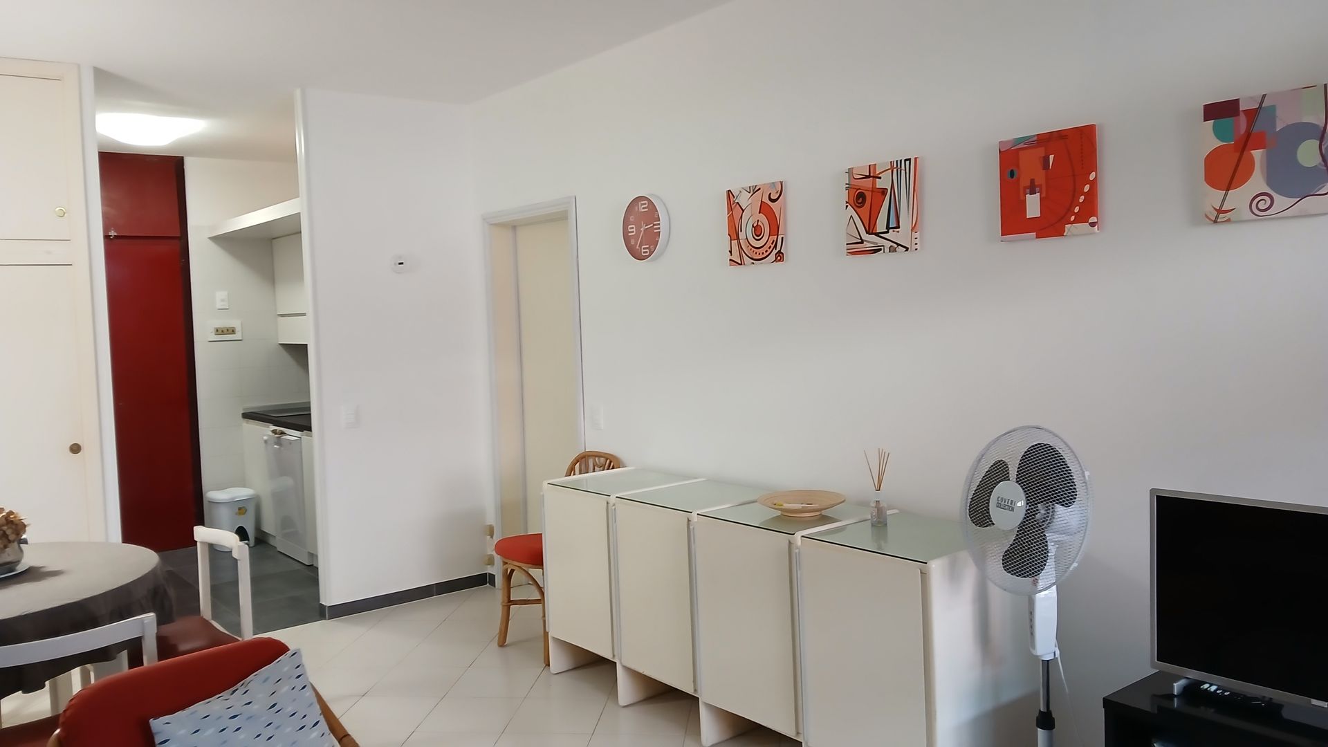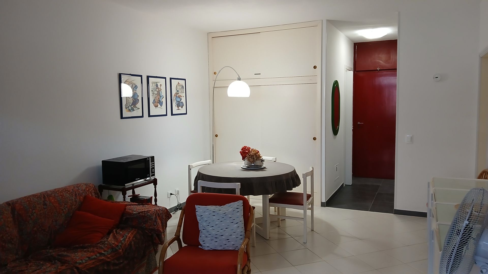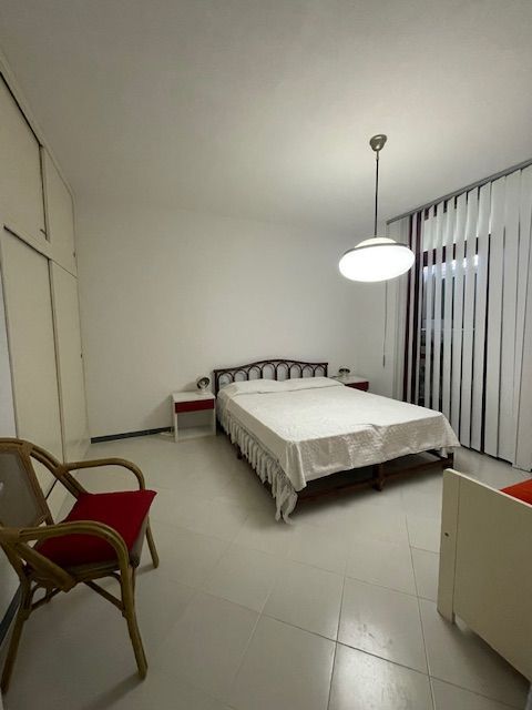 Appartamento al piano terra in Residence composto da: soggiorno con angolo cottura e divano letto matrimoniale, camera con letto matrimoniale, bagno con doccia, due verande e giardino. L'appartamento dispone di utensili necessari per la cucina. Dotato di Tv, microonde, lavatrice e lavastoviglie. Accesso gratuito alla piscina e parcheggio condominiale (no posti assegnati). Dista circa 450mt dal mare