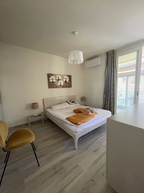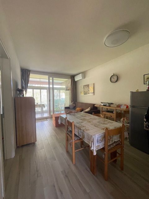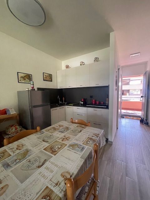 Appartamento al primo piano in Residence composto da: soggiorno con angolo cottura e divano letto matrimoniale, camera con letto matrimoniale, bagno con doccia, doppia veranda. L'appartamento dispone di utensili necessari per la cucina. Dotato di climatizzatore e Tv. Accesso gratuito alla piscina e parcheggio condominiale (no posti assegnati). Dista circa 250mt dal mare