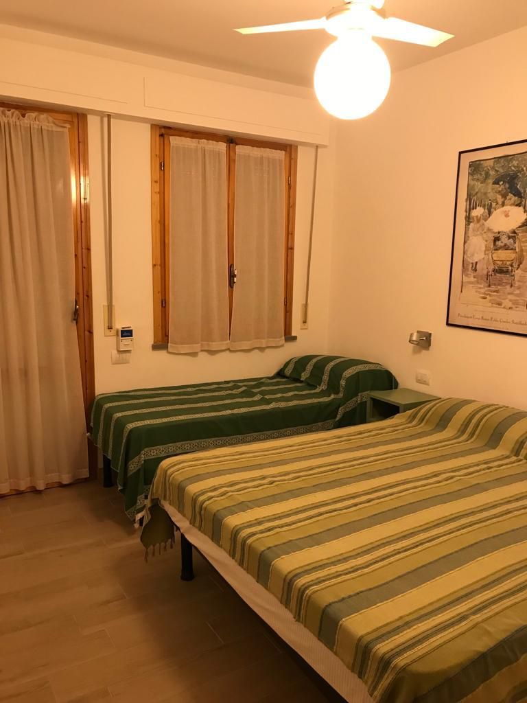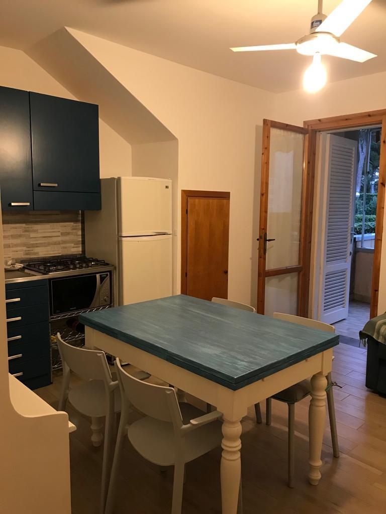 Appartamento al piano terra in zona tranquilla, ma vicino a tutti i servizi composto da: soggiorno con angolo cottura e divano letto matrimoniale, camera matrimoniale che si affaccia al secondo giardino e bagno con doccia. L'appartamento è dotato di TV e microonde. Posto auto nel vicino parcheggio condominiale. Dista circa 450mt dal mare