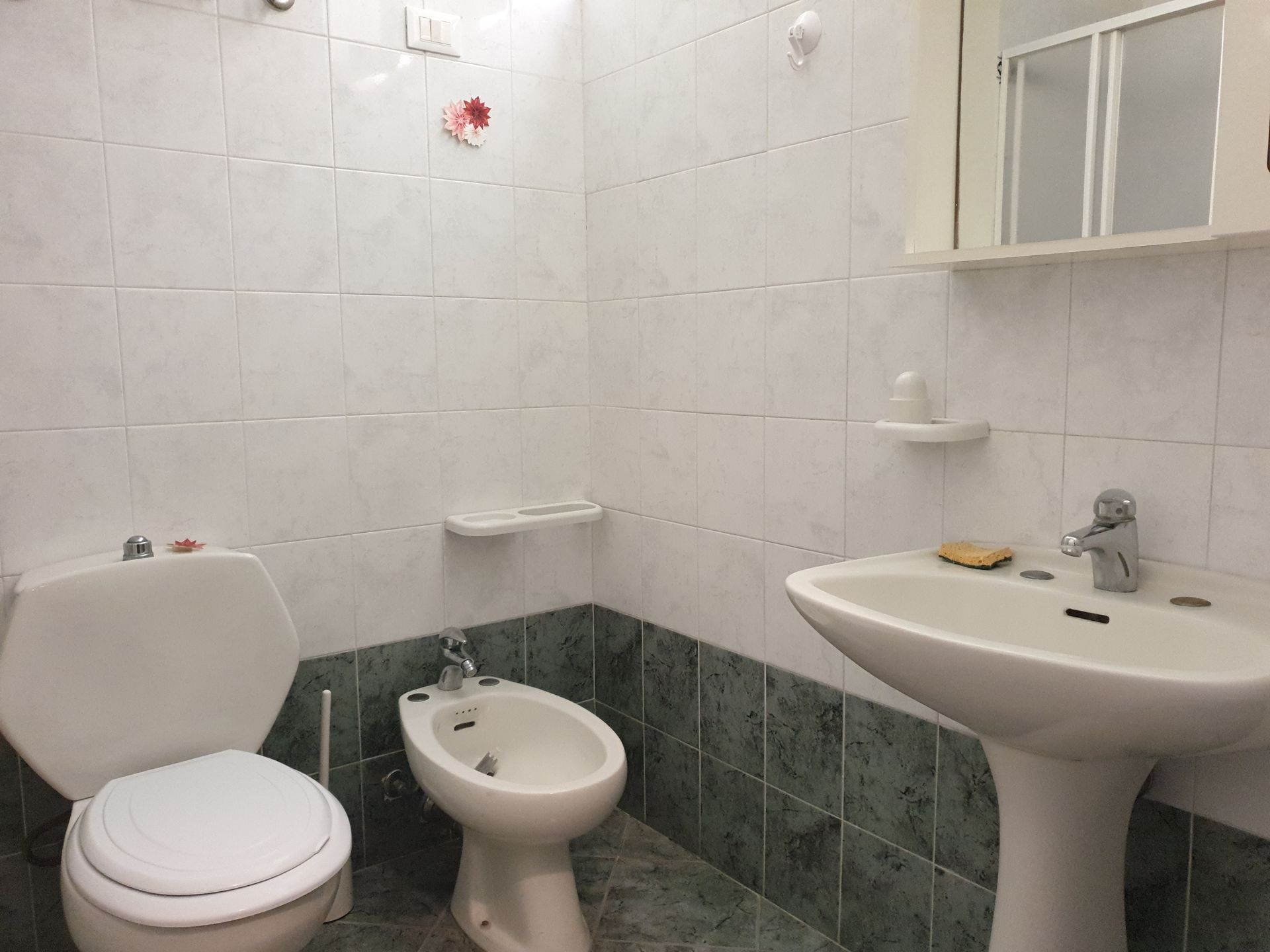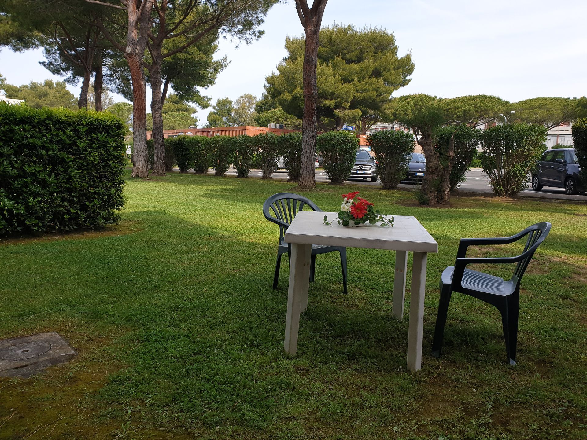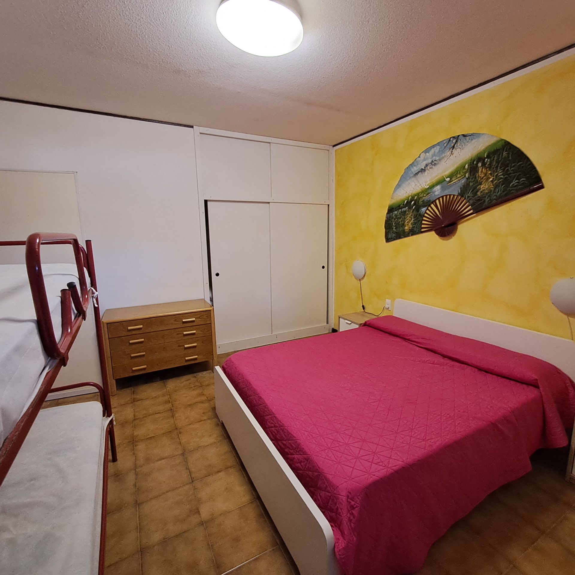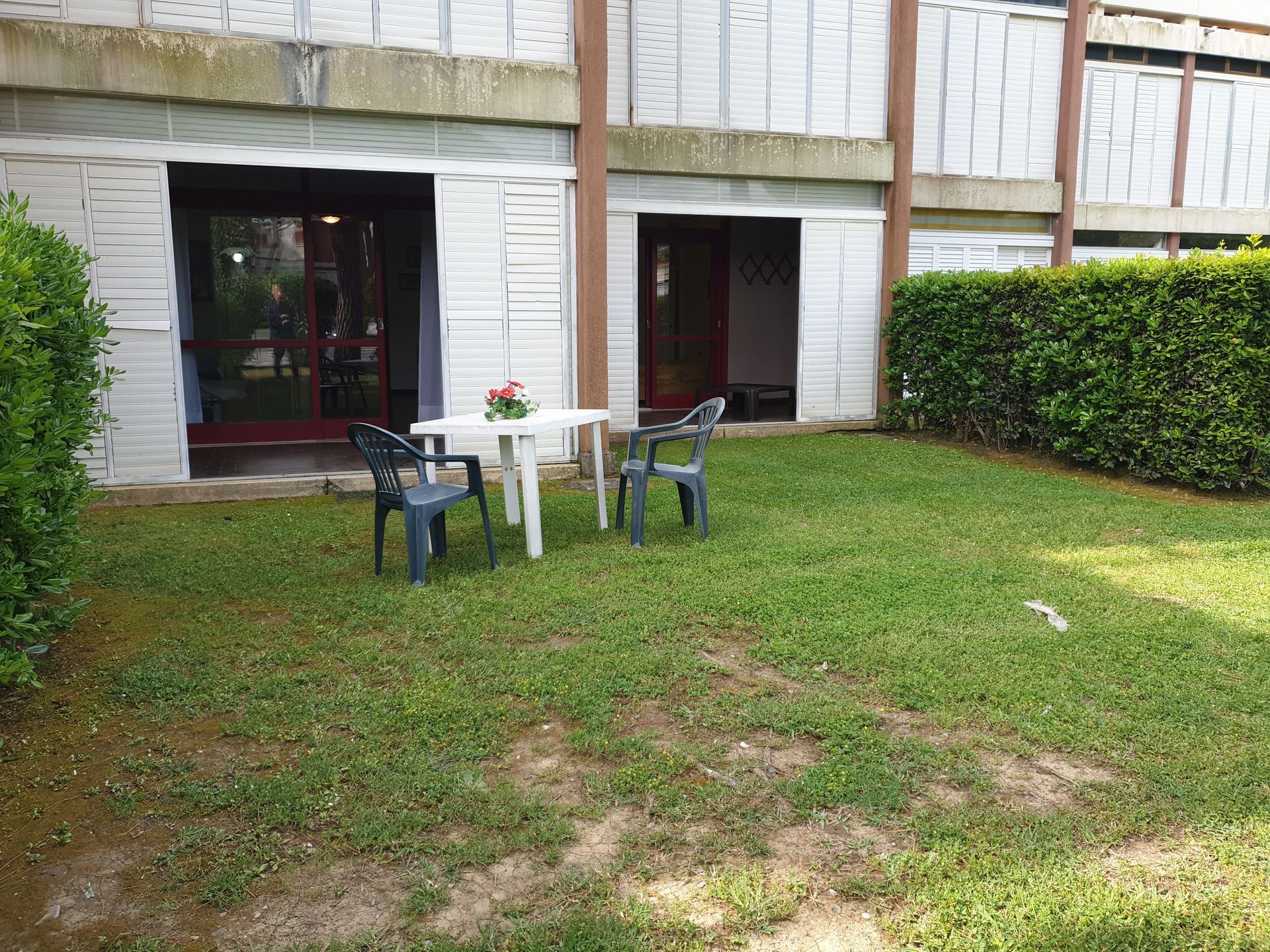 Appartamento al piano terra in Residence composto da: soggiorno con angolo cottura e divano letto matrimoniale, camera con letto matrimoniale e letto a castello, bagno con doccia, due verande e giardino. L'appartamento dispone di utensili necessari per la cucina e TV. Accesso gratuito alla piscina e parcheggio condominiale (no posti assegnati). Dista circa 450mt dal mare