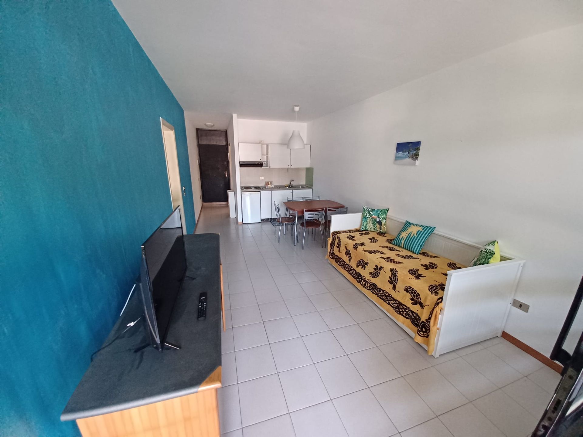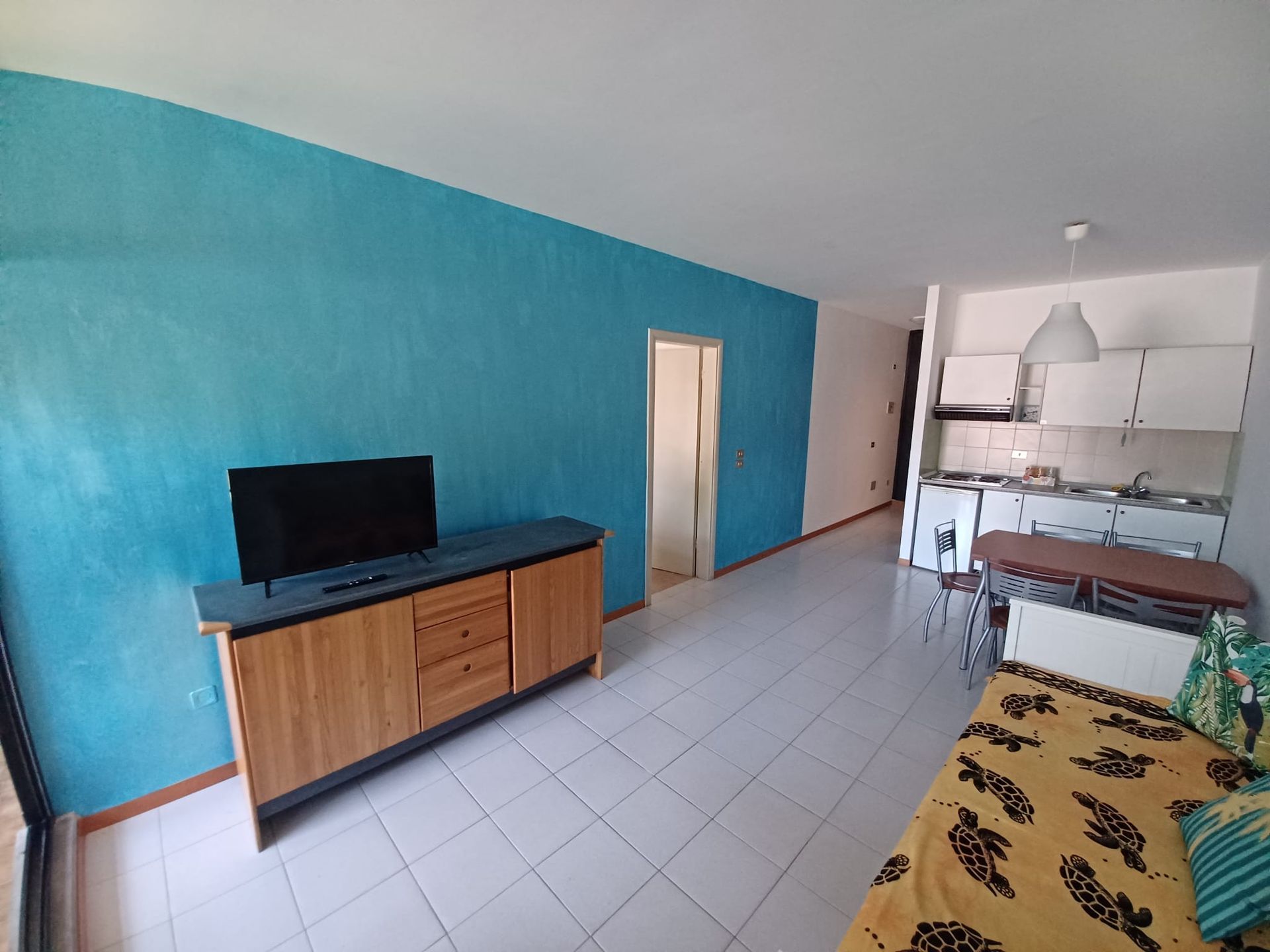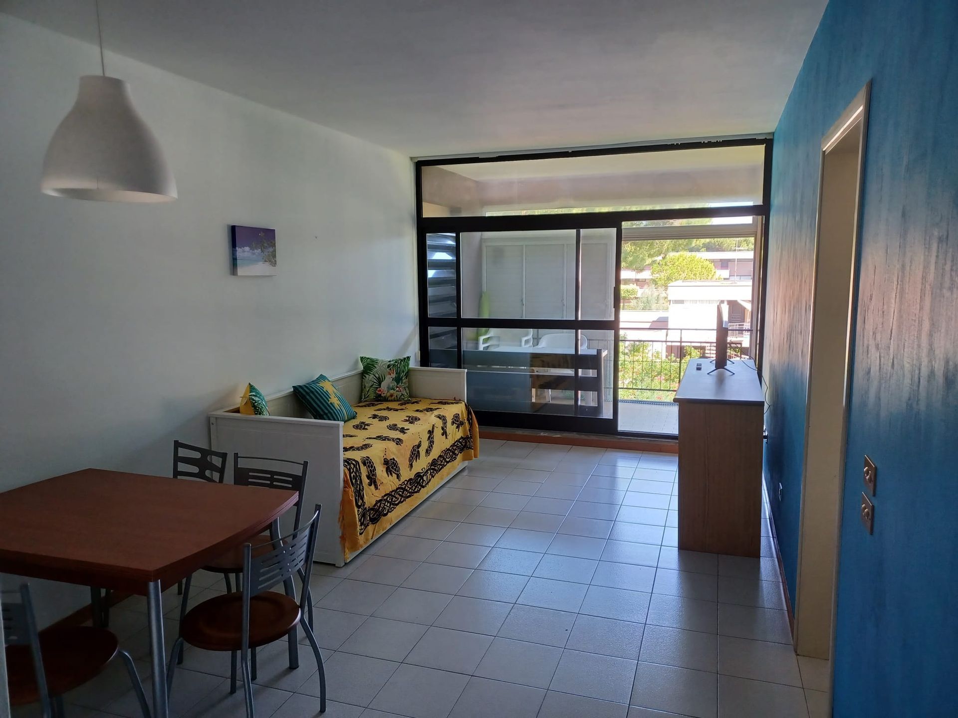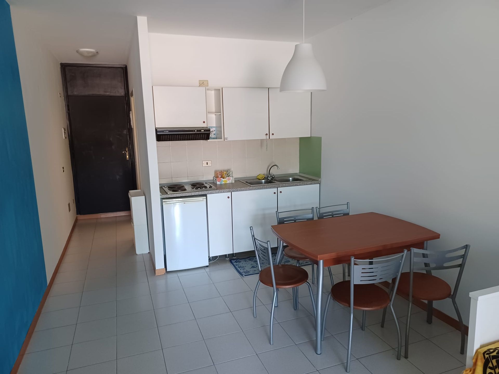 Appartamento al secondo piano in Residence composto da: soggiorno con angolo cottura e divano letto (due singoli), camera con letto matrimoniale, bagno con doccia, doppia veranda. L'appartamento dispone di utensili necessari per la cucina. Dotato di lavatrice e Tv. Accesso gratuito alla piscina e parcheggio condominiale (no posti assegnati). Dista circa 250mt dal mare