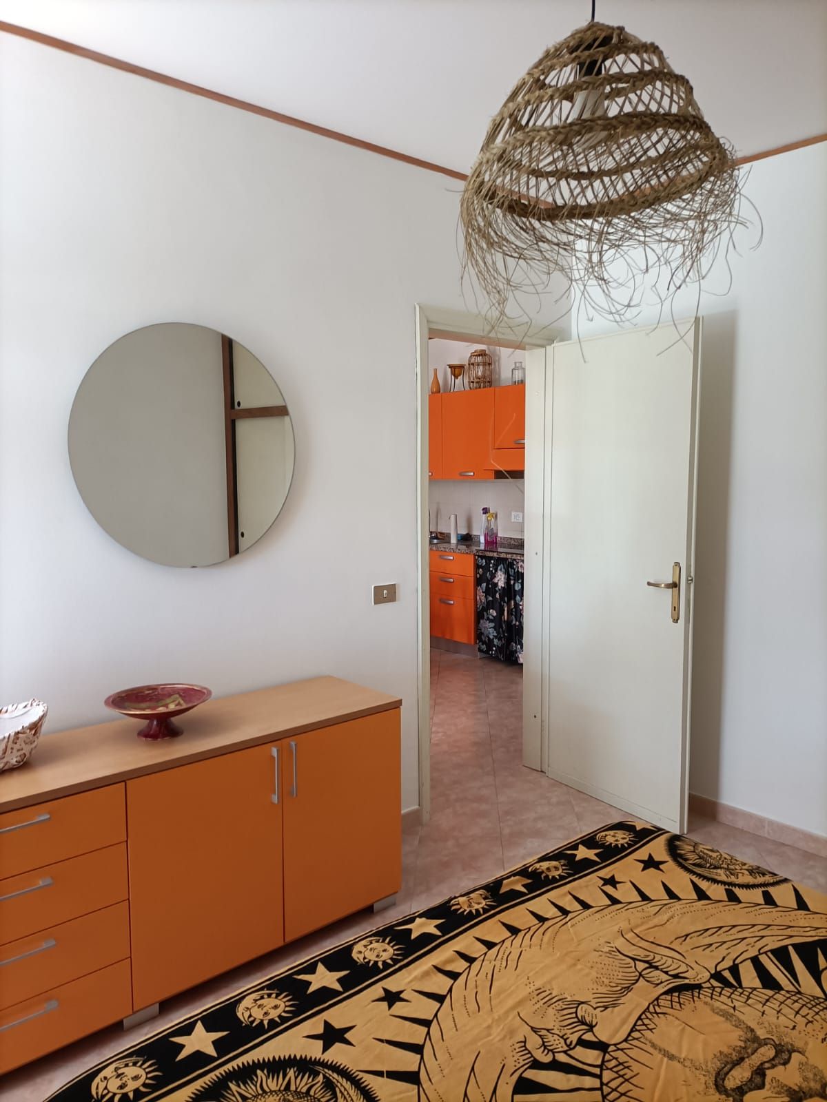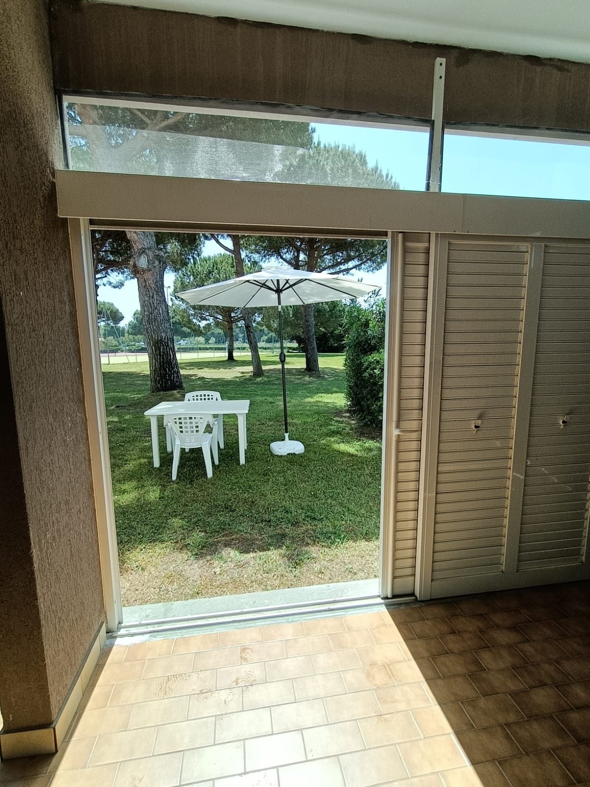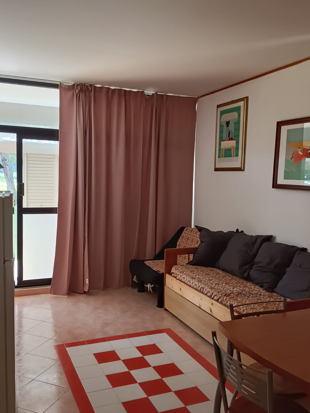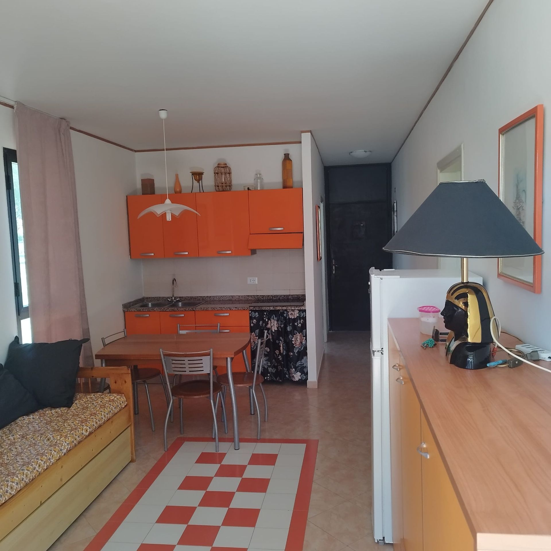 Appartamento al piano terra in Residence composto da: soggiorno con angolo cottura e divano letto (due singoli), camera con letto matrimoniale, bagno con doccia, doppia veranda e giardino. L'appartamento dispone di utensili necessari per la cucina. Dotato di Tv. Accesso gratuito alla piscina e parcheggio condominiale (no posti assegnati). Dista circa 250mt dal mare.