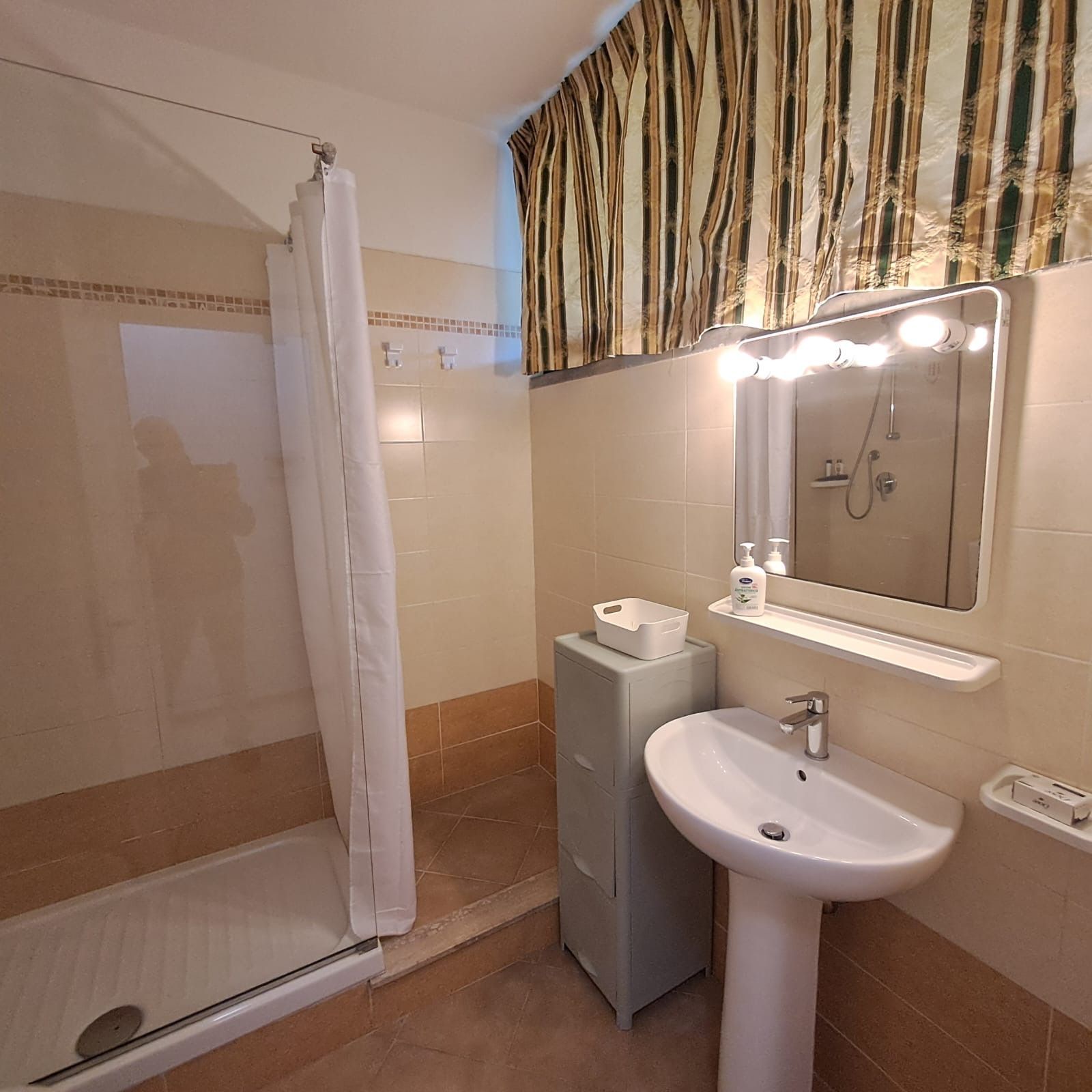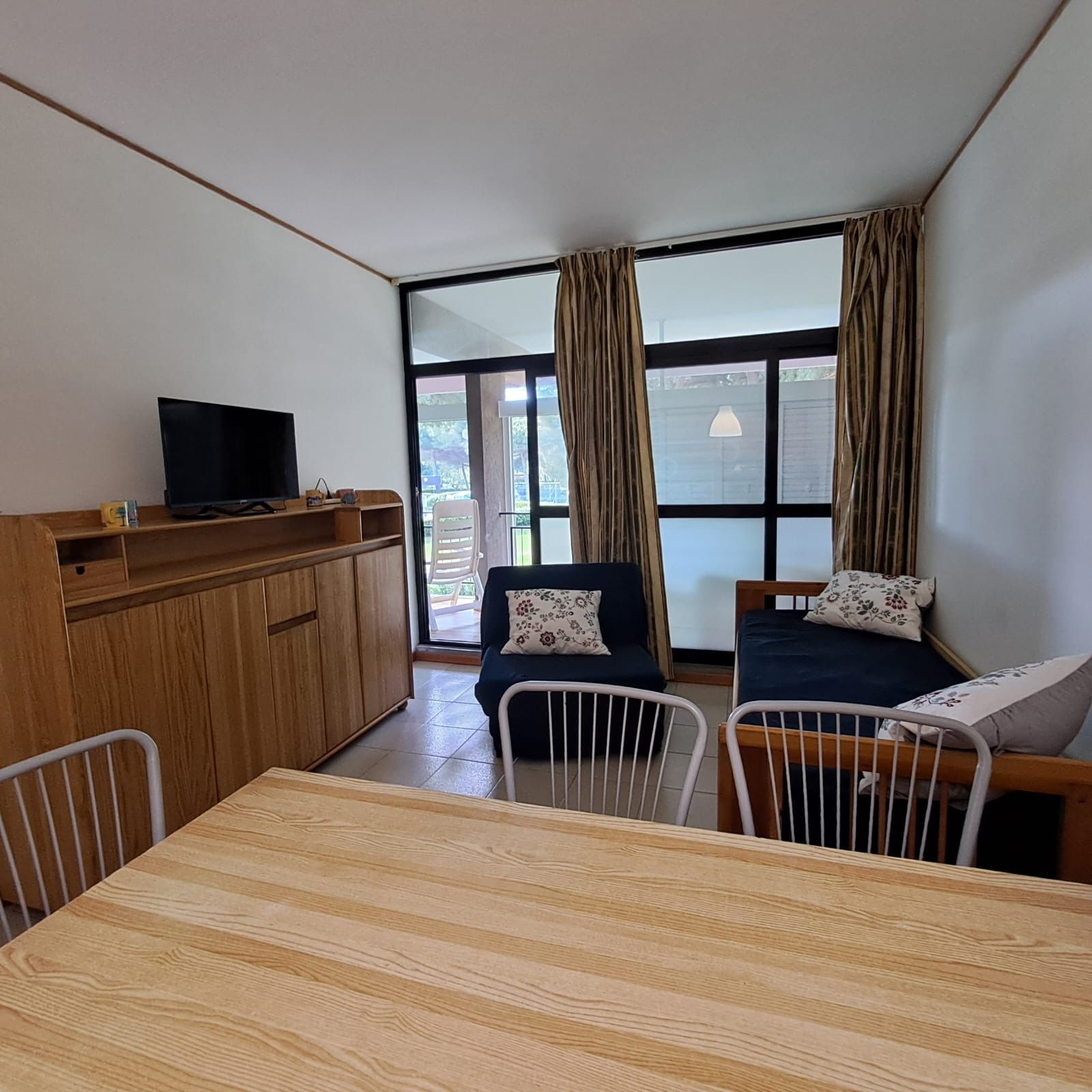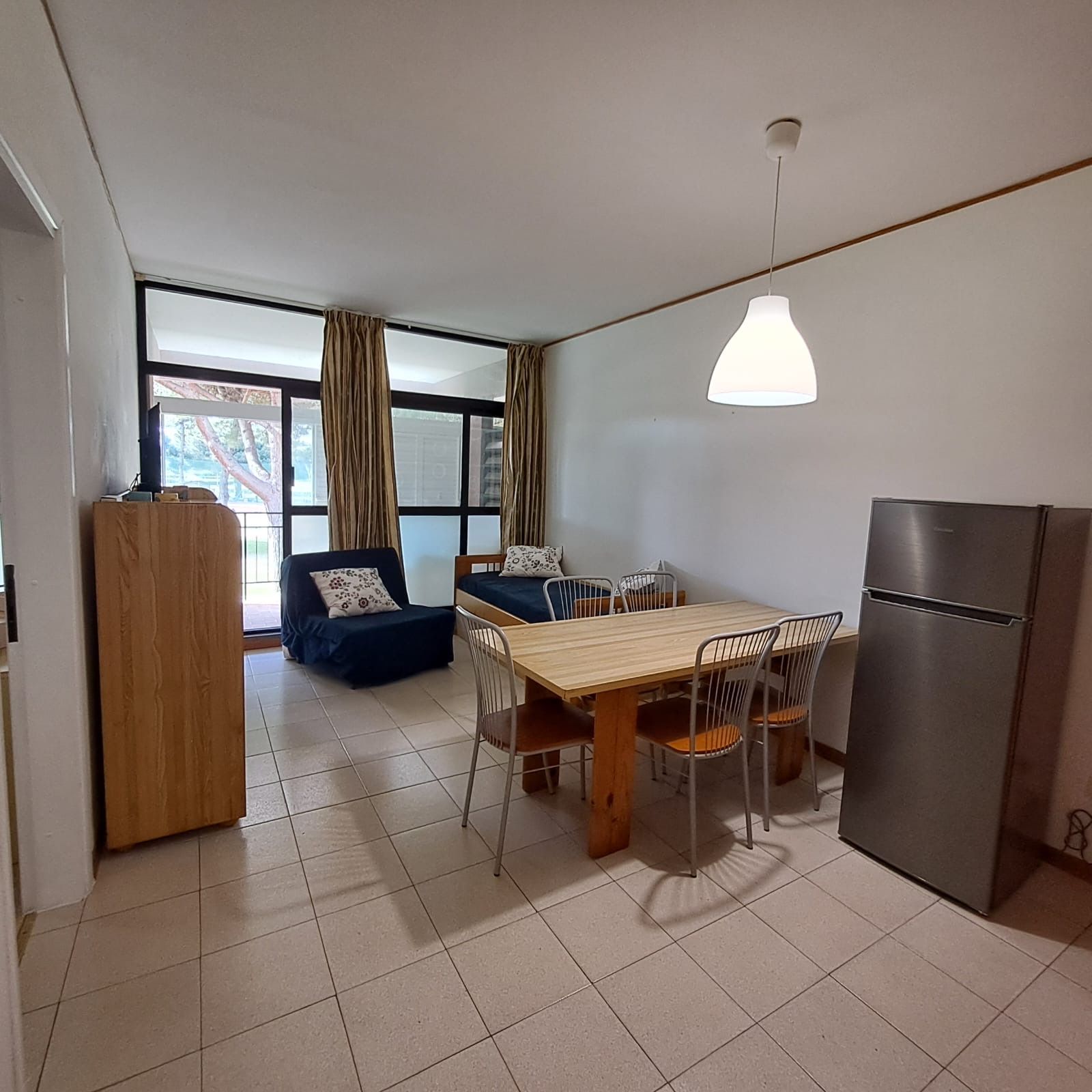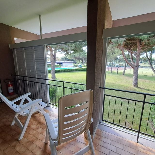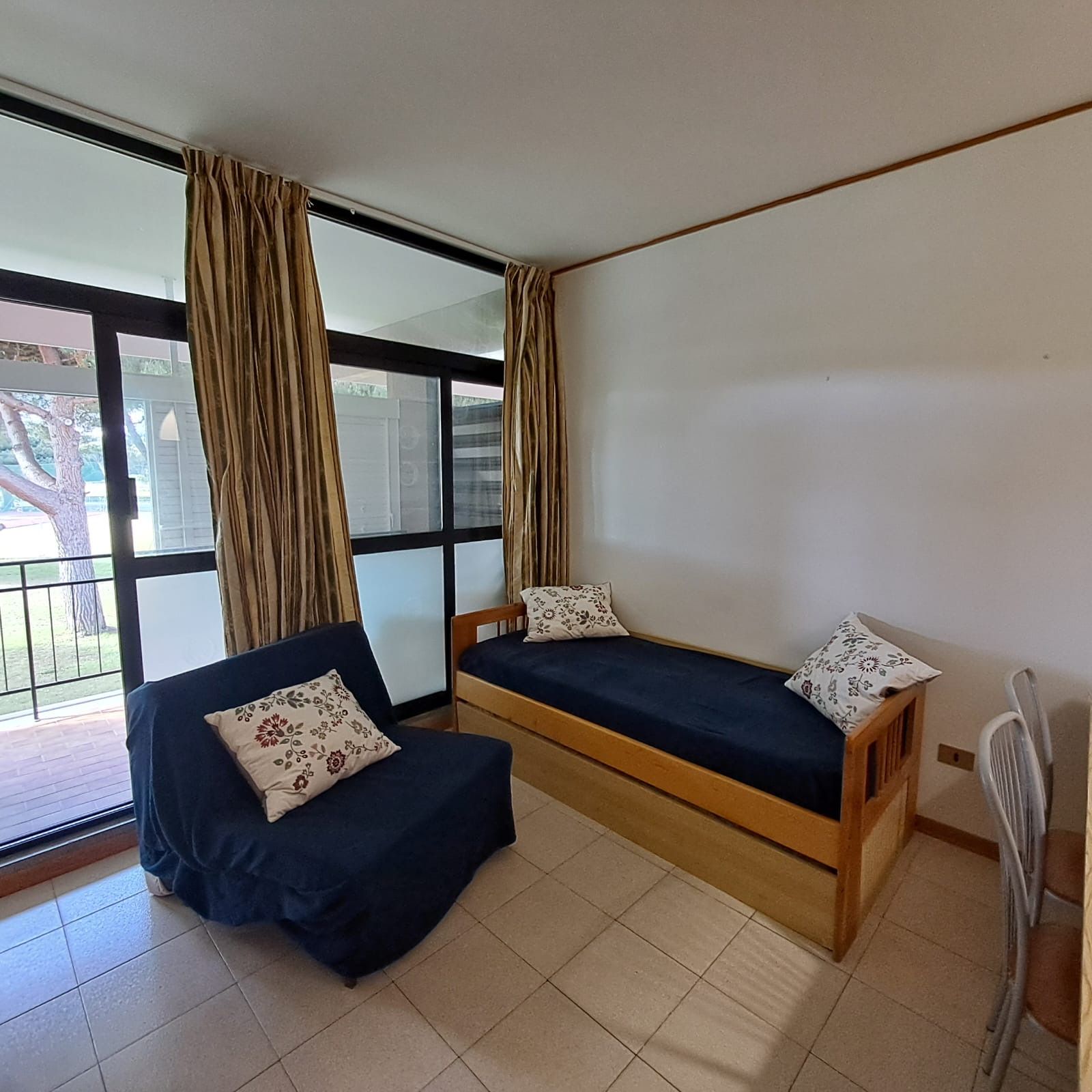 Appartamento al primo piano in Residence composto da: soggiorno con angolo cottura e divano letto (due singoli), camera con letto matrimoniale, bagno con doccia, doppia veranda. L'appartamento dispone di utensili necessari per la cucina. Dotato di Tv. Accesso gratuito alla piscina e parcheggio condominiale (no posti assegnati). Dista circa 250mt dal mare