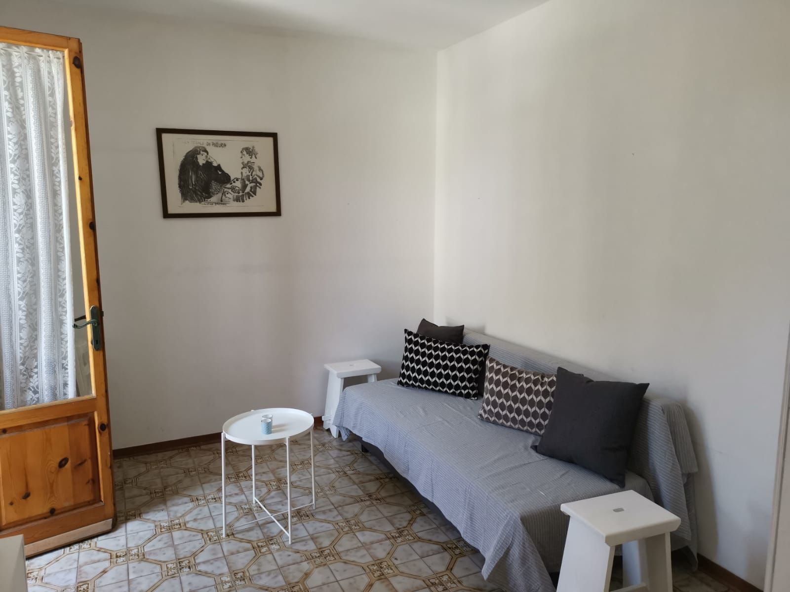 Appartamento al primo piano composto da: soggiorno con angolo cottura e divano letto matrimoniale, bagno con doccia, camera matrimoniale, due balconi, giardino, posto auto nelle vicinanze, lavatrice. A soli 100 metri dal mare.