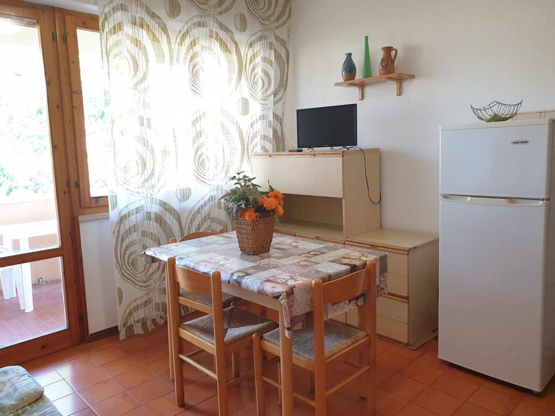Appartamento monolocale posto al piano primo composto da: ampio soggorno con angolo cottura e divano letto matrimoniale, camera matrimoniale e bagno. L'appartamento dispone di due terrazzine fronte-retro, lavatrice, tv e forno a microonde. Posto auto nelle vicinanze in parcheggio condominiale (non garantito), Dista circa 450 mt dal mare.