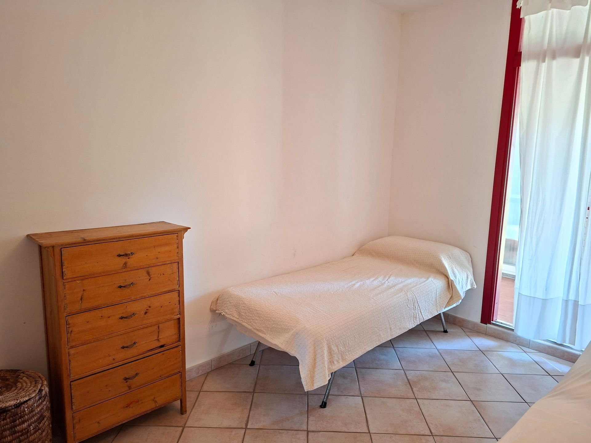 Ampio trilocale al primo piano in Residence composto da: soggiorno con angolo cottura e divano letto singolo, camera con letto matrimoniale e singolo, camera da letto con letto matrimoniale, bagno con doccia e doppia veranda. L'appartamento dispone di utensili necessari per la cucina. Inoltre sono presenti lavatrice, Tv. Accesso gratuito alla piscina e parcheggio condominiale (non garantito).