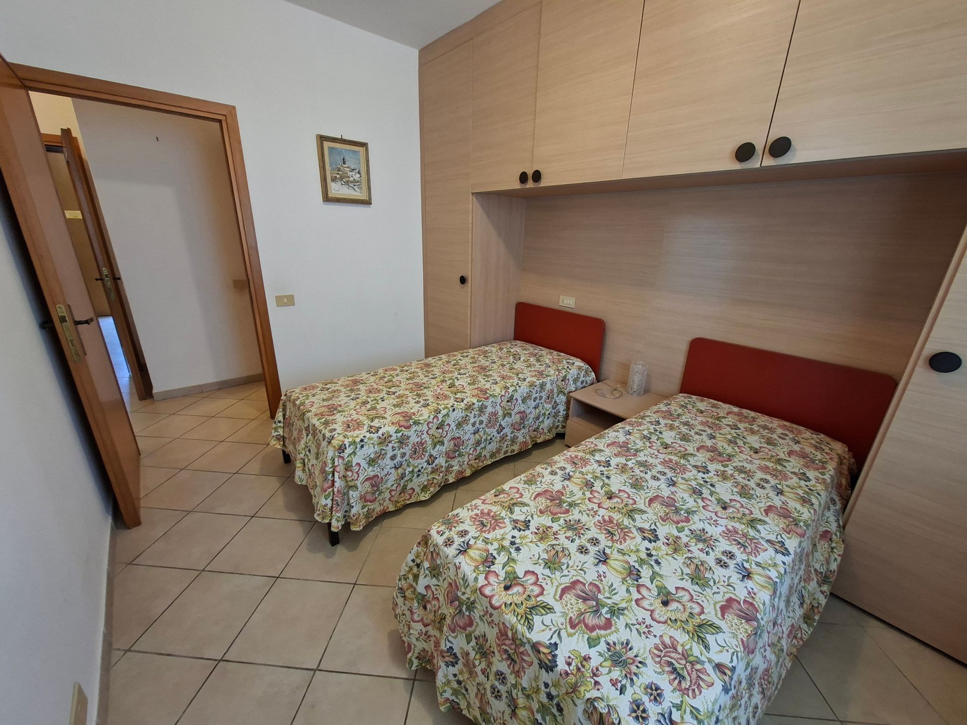 Appartamento al piano terra rialzato composto da : soggiorno con angolo cottura e divano letto matrimoniale, bagno con doccia, camera matrimoniale, camera con due letti singoli, ripostiglio. Tv e microonde. Terrazza pranzabile con lavatrice. Posto auto esclusivo per un auto. L'appartamento si trova vicino a tutti i servizi e dista 250m dal mare. Ottima posizione