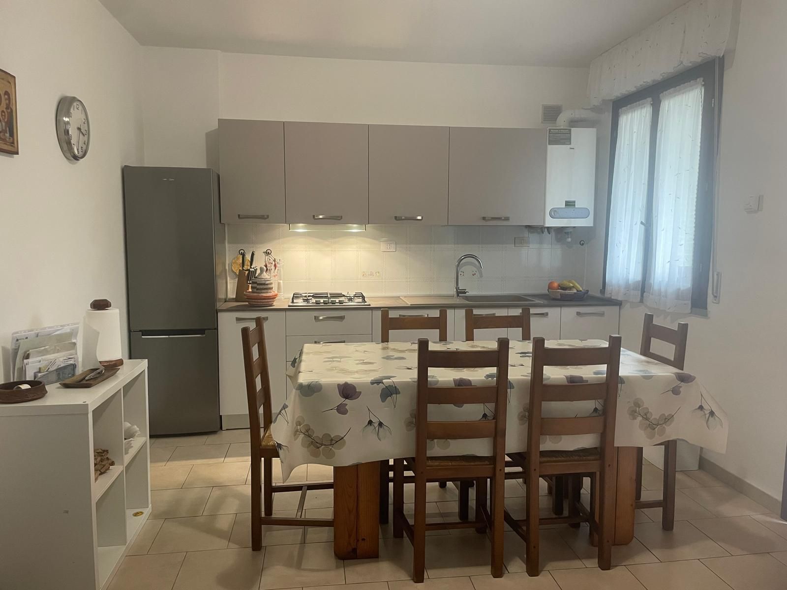 Appartamento al piano terra rialzato composto da : soggiorno con angolo cottura e divano letto matrimoniale, bagno con doccia, due camere matrimoniali, ripostiglio. Tv e microonde. Terrazza pranzabile con lavatrice. Posto auto esclusivo per un auto. L'appartamento si trova vicino a tutti i servizi e dista 250m dal mare. Ottima posizione